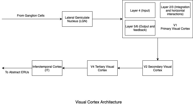 In the past two weeks, I’ve focused on building similar structures and mechanisms for vision i.e., bridging the ganglion cells and the ERUs via the visual cortex (V1, V2 and so on).